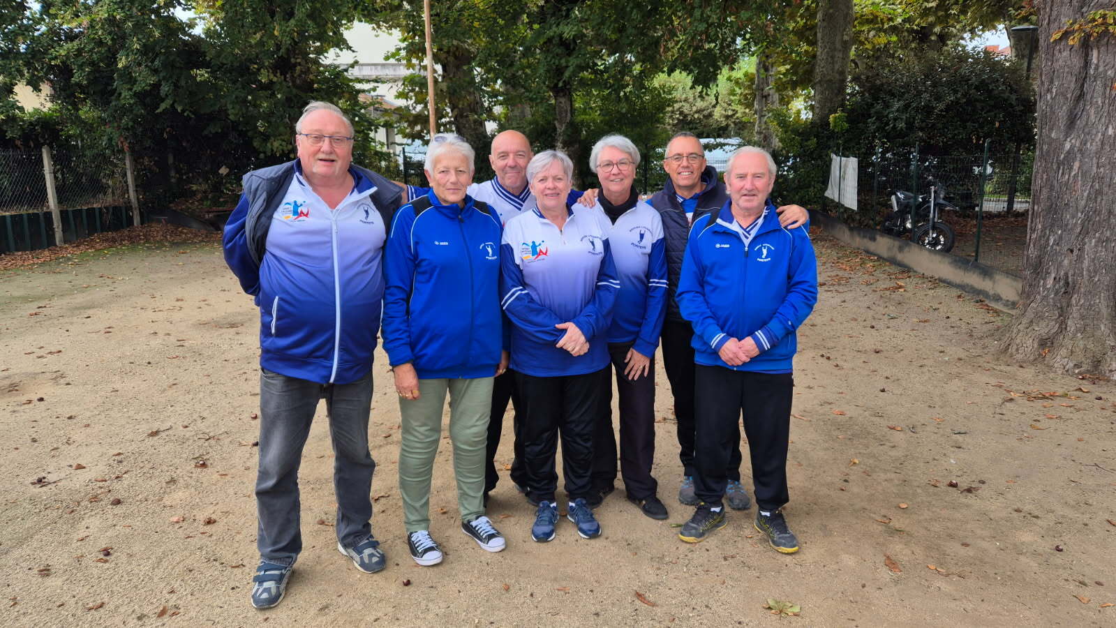 Dimanche 28 septembre, 2 équipes étaient en déplacement chez nos "voisins" de Pineuilh. 12 équipes avaient répondu à l'appel pour la première édition du challenge Jean Jacques Gouillou. Malheureusement le soleil n'a pas répondu à la convocation et le froid s'est invité à la journée. Organisé selon le système des groupes, l'équipe Gérard, Claude et Rémy accède à la demi-finale avec 3 victoires et l'équipe Philippe, Marie-Christine et Marie-Claire (Aline en jocker médical) jouera une partie de classement.