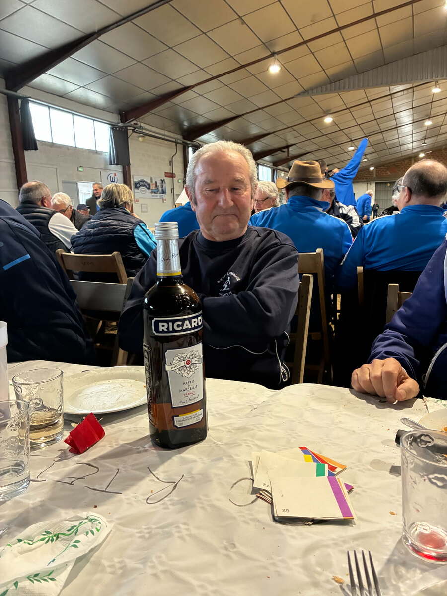 Pour un succès total, Claude a également gagné le premier lot de la bourriche !!! Claude recherche un volontaire pour échanger sa grosse bouteille contre une bouteille plus petite mais de Marseille. N'hésitez pas à lui proposer .....