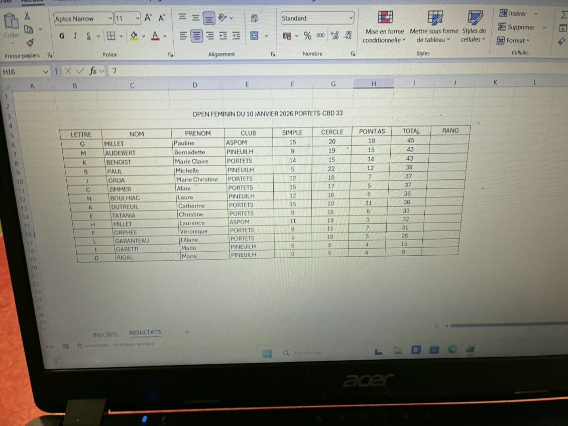 Les 3 clubs seront représentés lors de la phase régionale; Marie Claire et Marie Christine (qui devance Aline au classement mais avec le même nombre de points ) représenteront Portets.Le classement complet est disponible sur l'une des photos ci-dessous.