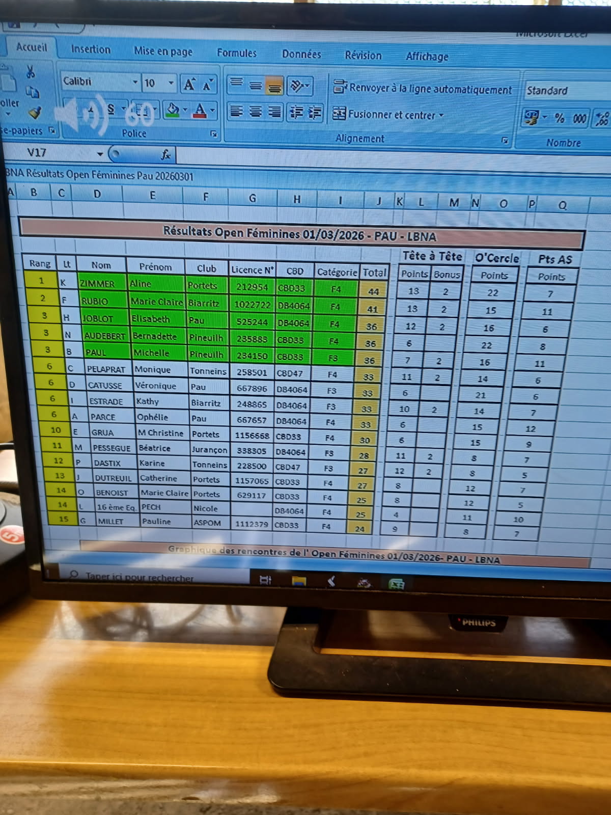 Au classement général (voir içi), Aline termine 1ère, décroche le trophée et se qualifie pour l'Open de Nouvelle-Aquitaine programmé le 29 mars à Angoulême. Même si les 5 premières pouvaient accéder à la phase suivante, c'est une petite déception pour Portets qui n'aura qu'une seule représentante. Mais le niveau était élevé, le niveau féminin régional progresse et ce n'est ni la championne régionale 2025, ni Pauline, la championne départementale 2026, non qualifiées, qui diront le contraire. Notons la qualification des deux représentantes du club de Pineuilh, futures adversaires des portésiennes lors de la prochaine rencontre des AS féminine, le 7 mars.