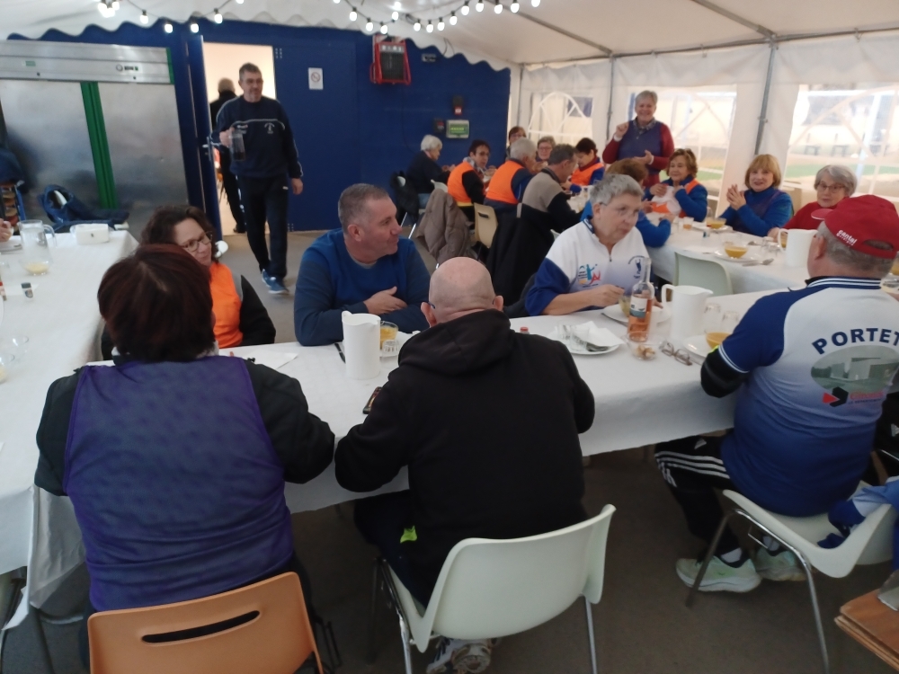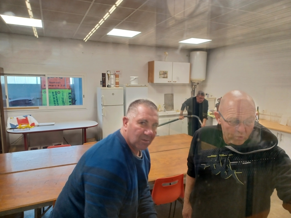 Dès 10h et jusqu'en fin d'après midi, les ateliers se sont enchainés sous la direction de Didier, Pierre, Alain Bernadet et Jacques Paul (Pineuilh). Et, pour aiguiser leur motivation, deux équipes ont été constituées : les chasubles orange d'un coté, les chasubles bleu de l'autre.