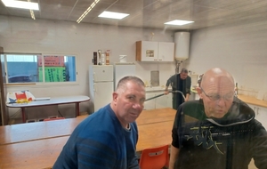 Alors que ces dames se perfectionnaient, une équipe de choc avait pris place en cuisine et au service : Thierry Martinez, Mickael Chevalier, Fréderic Lacote, Philippe Puyaubreau, Pascal Bourguelat et Romain Dutreuil. Leur nombre peut sembler conséquent mais, en cuisine, il faut bien 2 hommes pour remplacer une femme !! Ils ont même passeé l'aspirateur dans la cuisine et la tente !